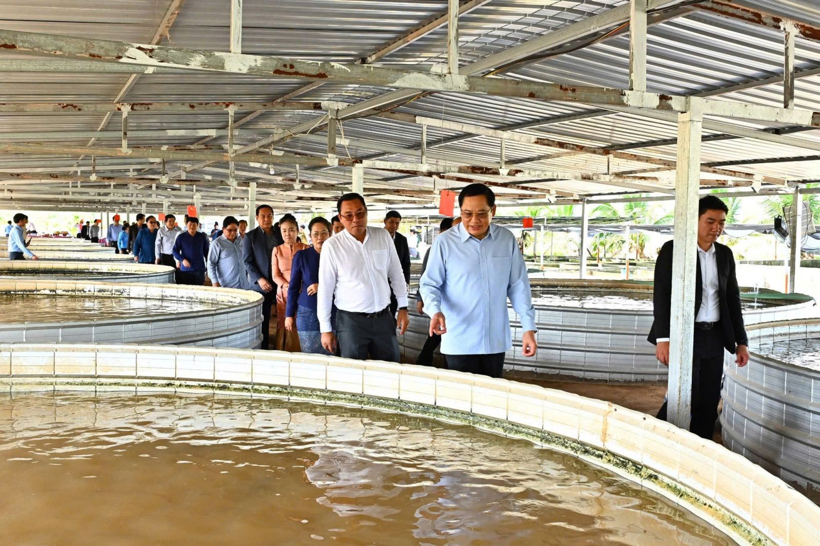 Prime Minister Sonexay Siphandone Visits a Fish Farm in Laos
